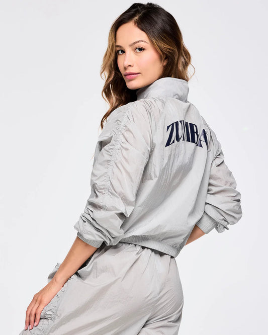 Zumba Out Loud Crop Woven Jacket With Ruched Sleeves