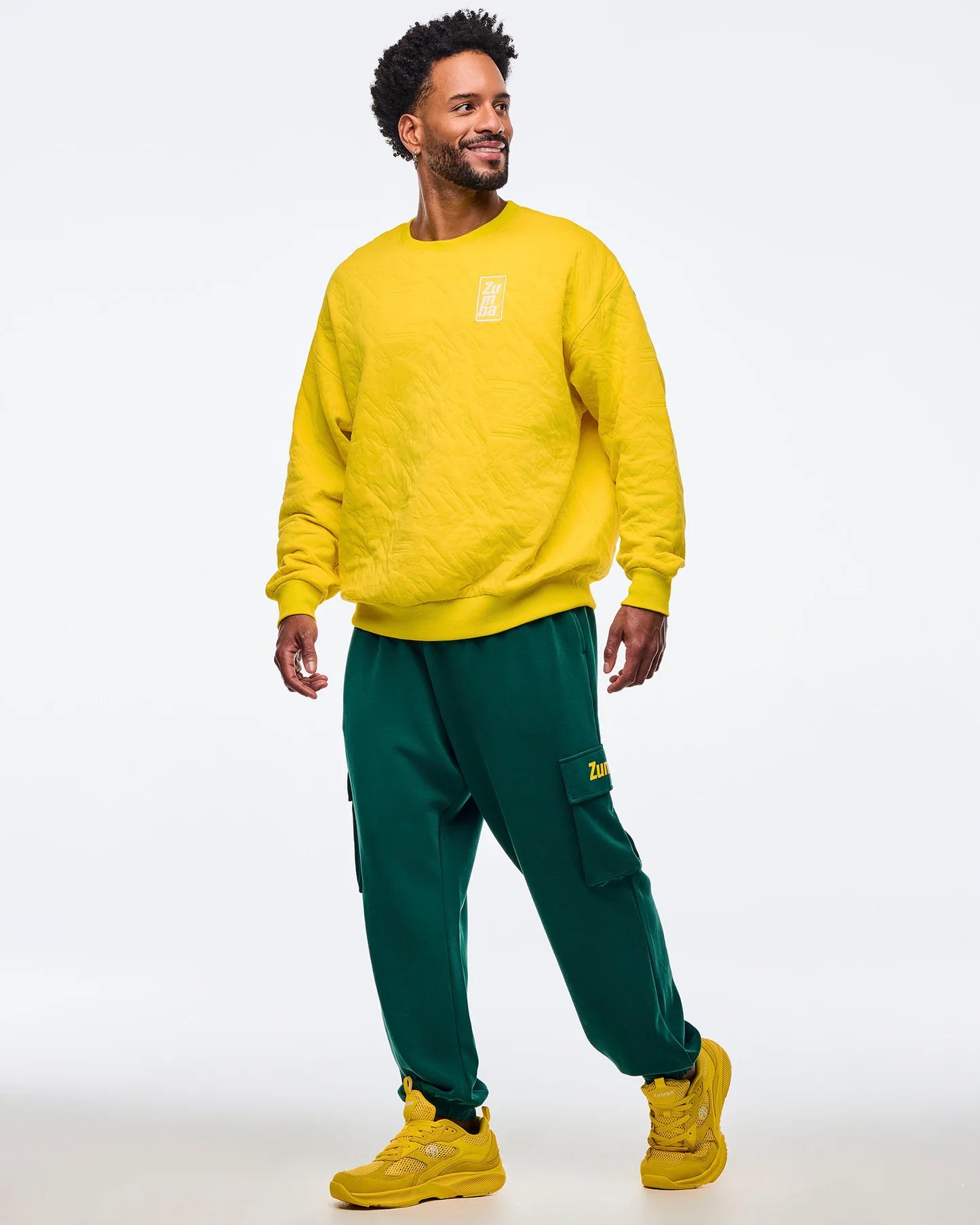 These slouchy cargo pants feature a 28" inseam and are made from a cool, buttery-soft modal blend for ultimate comfort. They include an adjustable buckle and strap at the waistband, upper inseam and side cargo pockets, and an encased elastic waistband and cuffs for a secure fit. Finished with a Zumba print on the pocket, these oversized pants offer long length and casual style. Please note, color variations may occur due to the fabric’s natural fibers.