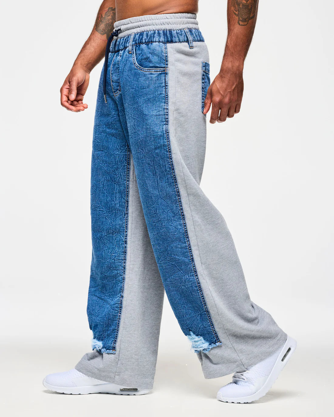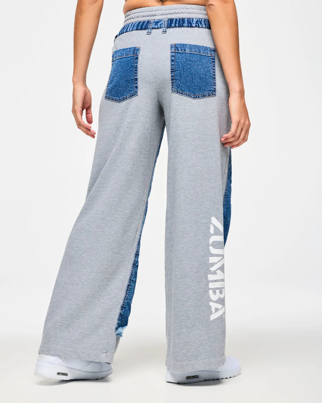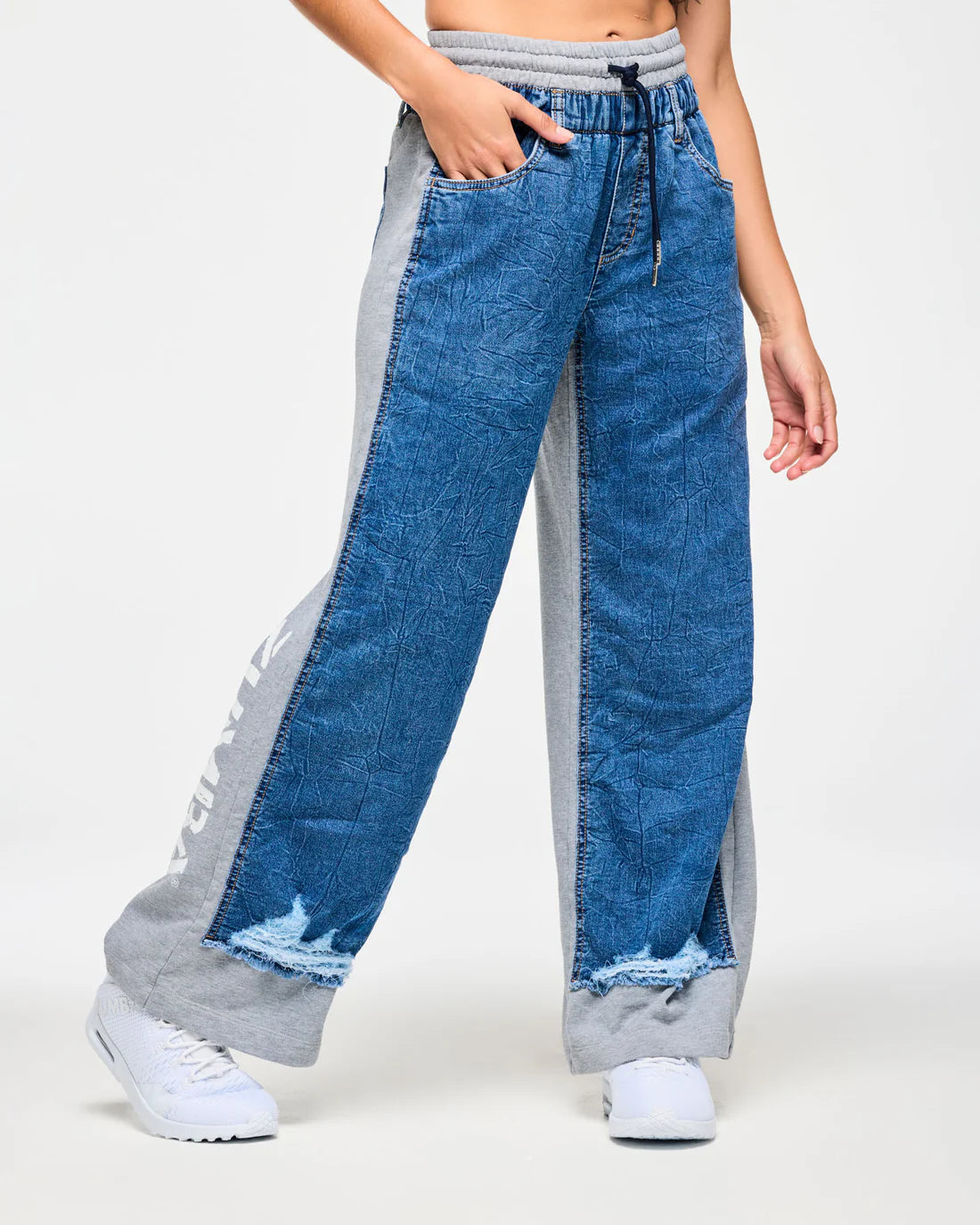 These Blue Jean Denim Sweatpants feature a 30" inseam and combine stretch denim with soft French terry for exceptional comfort and flexibility. Designed with an encased elastic waistband and functional drawcords, they offer a secure, adjustable fit. Details like double waistbands, faux denim accents, belt loops, and classic jean pockets enhance their style. The color block panels create a striking look, while the relaxed, dance-ready fit supports active movement. Perfect for Zumba, errands, or relaxing post-class, these sweatpants showcase bold Zumba branding for a confident, dynamic vibe.