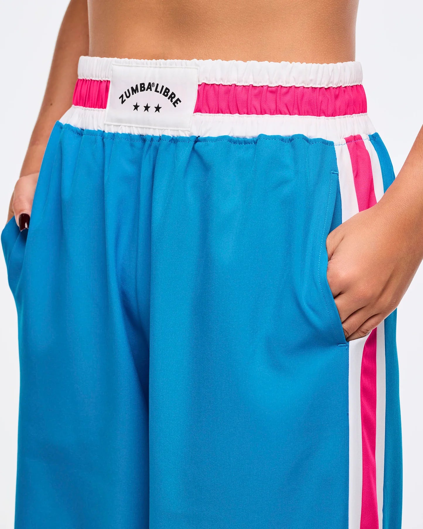 These long-length track pants feature a 30" inseam and an encased elastic waistband for a comfortable fit. Designed with inseam pockets and color-blocked side inserts and waistband, they showcase the Zumba Libre print on the front waistband. The relaxed fit offers ease and style for everyday wear.